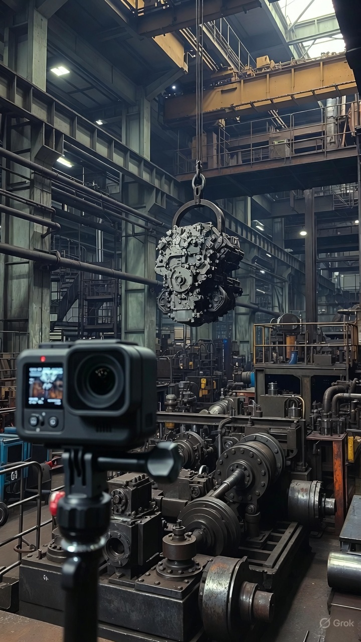 Industrial environments include confined areas (machinery interiors, assembly lines, pipelines, high bays, clean rooms, or moving conveyor belts). Action cameras are tiny, rugged, waterproof/dustproof, and can be mounted almost anywhere (magnetic mounts, clamps, helmet/chest rigs, suction cups, or embedded on equipment). This allows immersive “inside the action” perspectives that large cameras can’t safely or practically reach.